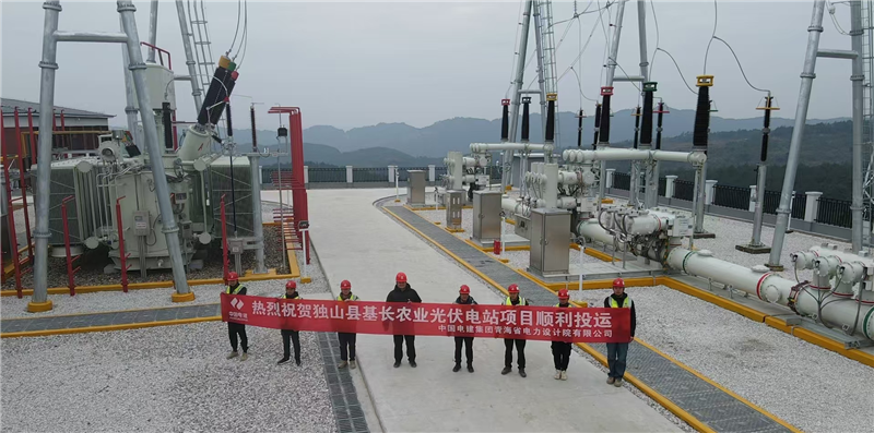 2024年12月28日,青海院总承包建设的独山县基长农业光伏电站项目升压站一次性带电成功,12月29日光伏区首批并网发电成功。 独山县基长农业光伏电站项目位于贵州省黔南州独山县基长镇,直流侧装机容量200兆瓦,新建一座220千伏升压站,220千伏升压站新建单回220千伏线路至独山500千伏变电站,西北架空出线。线路全长约21km。光伏场区总面积约4000亩,共计规划41个光伏方阵,采用分块发电、集中并网方式,通过8回35千伏集电线路汇集至新建升压站主变35千伏侧。项目的顺利建成投运,每年为贵州电网提供清洁电能约1.8亿千瓦时,节约标煤约9.7万吨,减少二氧化碳排放量约15吨,并减少相应的废水排放和大气污染物排放,为当地社会经济发展提供绿色能源。 项目开工以来,在青海院领导的坚强领导下,以及各部门的大力支持下,总承包项目部精心组织,科学谋划,始终秉持“以安全为生命 以进度为主线 以质量为根本”的建设理念,将责任落实和精细化管理作为重点,明确包保区域责任人及职责。在施工过程中克服设备物资供货紧张、山地运输困难、施工地形复杂、夏季高温、汛期连续降雨等不利因素,最终以分秒必争的紧迫感、时不我待的责任感,勇挑大梁的使命感,确保了项目如期顺利投运,光伏区首批全容量并网发电成功。